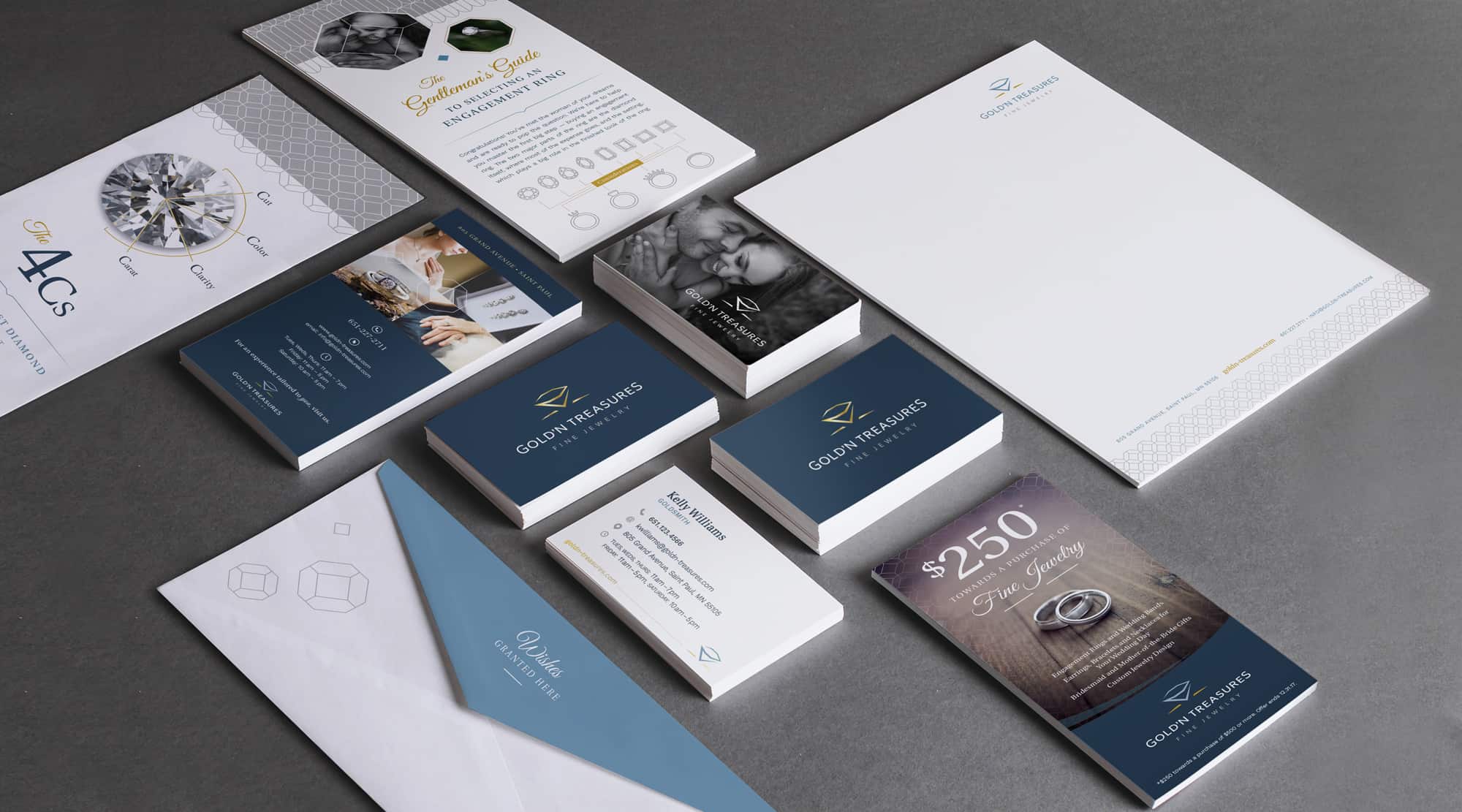 For the rebranding of Gold’N Treasures, a unique fine jewelry store in St. Paul, Minnesota, Studio2 was awarded a Platinum Hermes Creative Award. This comprehensive project spanned everything from a new logo and marketing materials, to packaging, in-store signage and the store itself. The Hermes Creative Awards celebrate creative professionals internationally for bringing ideas to life in both traditional and online platforms.