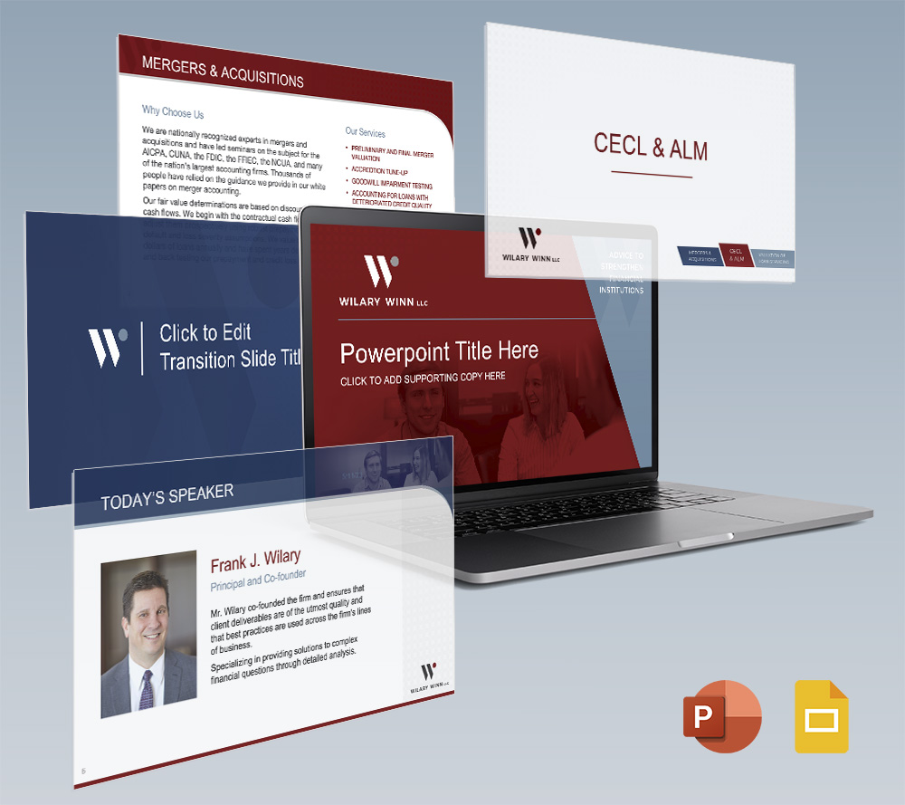 After undergoing a logo modernization, Wilary Winn came to Studio2 for refreshed marketing materials that would align with their new brand identity. We designed a comprehensive toolkit including a template for downloadable white papers they offer on their website, a PowerPoint template for conference and webinar presentations, business cards and stationery for correspondence, and email templates for ongoing contact with Wilary Winn’s current and potential clients. Not only are the designs cohesive with the modernized logo, but they also reflect Wilary Winn's polished, professional image.
